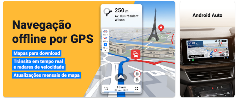 Para los que buscan una experiencia premium, la Navegación GPS Sygic es la opción. Sus mapas 3D y la guía de voz detallada te ofrecen una navegación de alta calidad. Con funciones adicionales como alertas de velocidad y asistencia de carril, esta app garantiza un viaje seguro y relajado. Es, sin duda, una herramienta completa para una navegación eficaz y refinada.